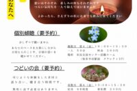 御仏事は大切な方の死を縁に勤まります。亡き人の言葉や願い、素敵な笑顔を偲んでください。その悲しみのなかで「死」ということを感じ、この私はどう生きてきたのか、どう生きていくのか、亡き人はどう生きてきたのか…。しかし、時が過ぎるなかで、その思いは忘れてしまうのも事実です。仏事は忘れていた大切なことを呼び戻し、仏さまに出遇わせていただく場です。ともにお念仏申してください。