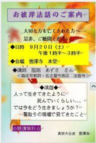 お彼岸法話…お知らせ!